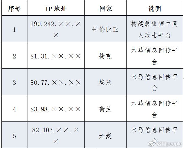 技术分析与追根溯源调查中,技术项目组辨认出了一批TAO在网络侵略北京航空航天大学的行动中托管所用有关武器装备的伺服器IP地址,举例如下:
