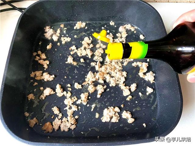 ?5.炒至肉糜散开变色,放入适量美极鲜味汁,将肉糜炒熟盛出。