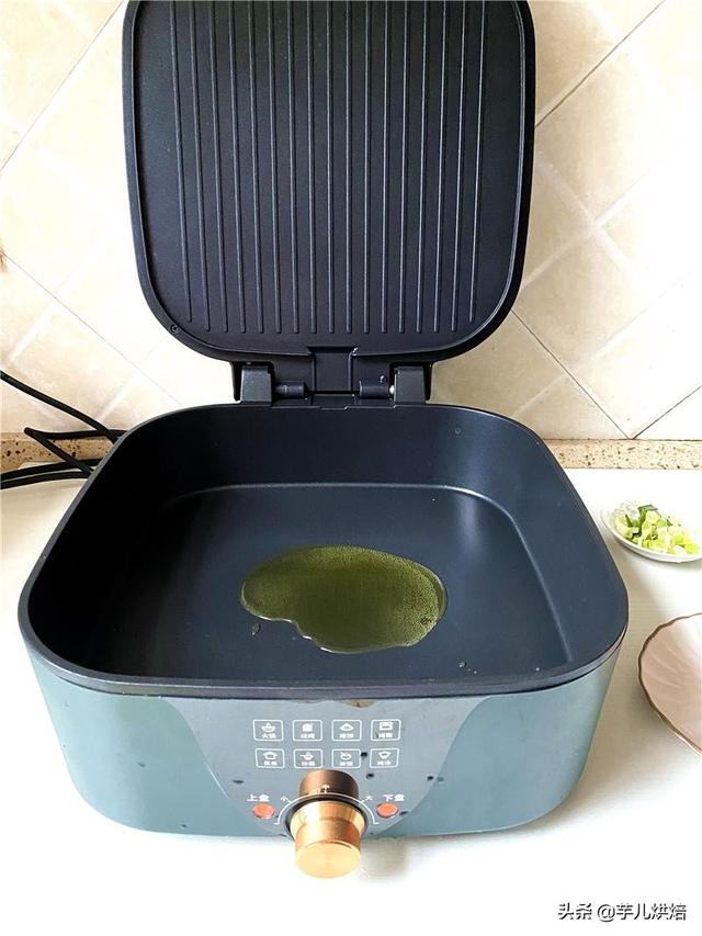 ?3.将新思特涮烤一体多功能电饼铛插上电源,中火将锅烧热,放入适量橄榄油烧至7成热。