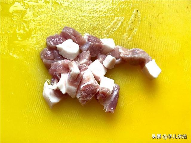 1.将猪肉洗净,去皮,再将猪肉切成小块。