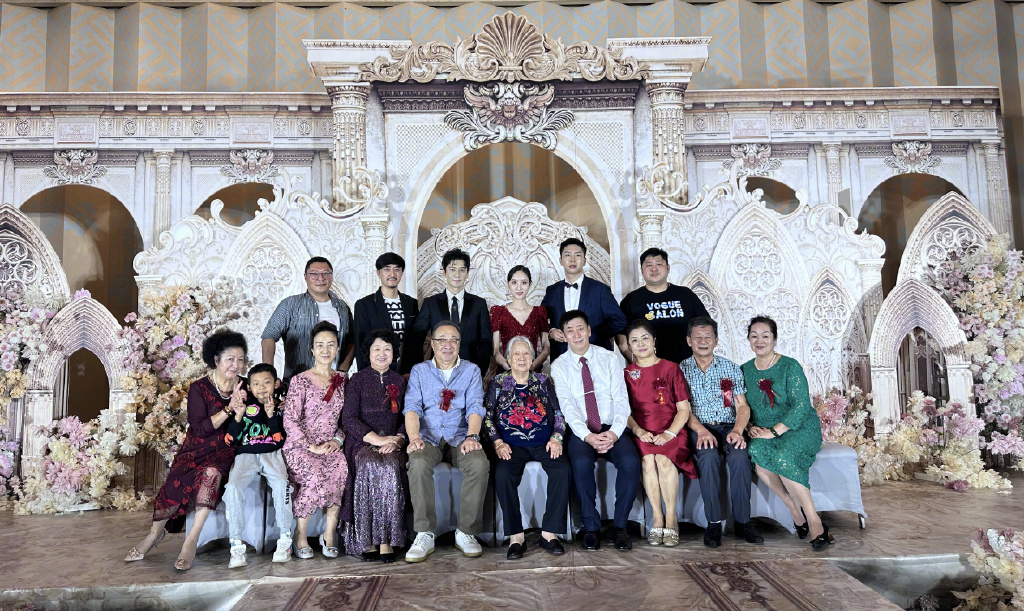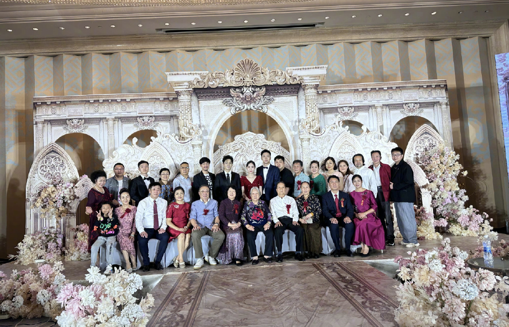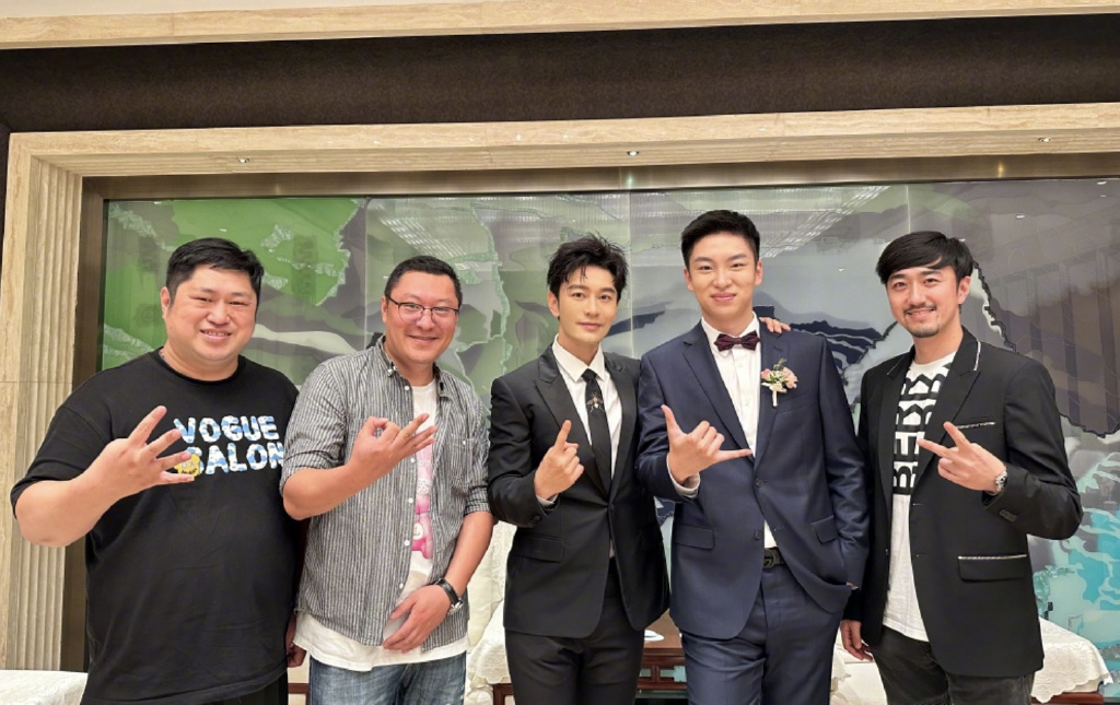 44岁的范冰冰搭着新郎舅舅的肩膀,他俩像极了同龄人。所有人都比出了不同的数字,估计都是表兄弟,按照年龄排序,不得不承认范冰冰保养得是真的年轻啊!