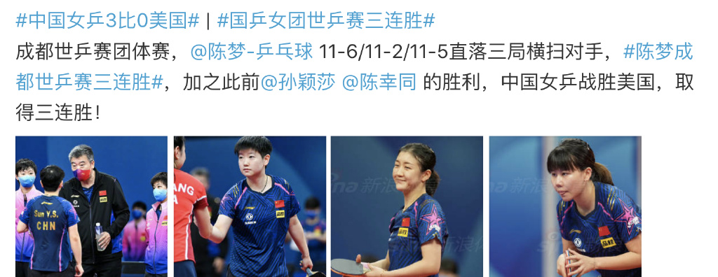 目前的赛况是这样的,尹玉姬和孙颖莎陈幸同三连胜击败美国选手。