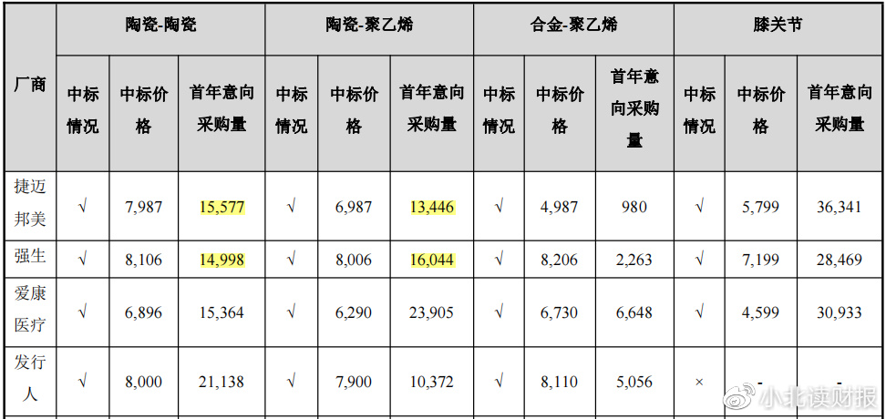 (上述发行人指春立医疗,截取部份骨关节PON数据)