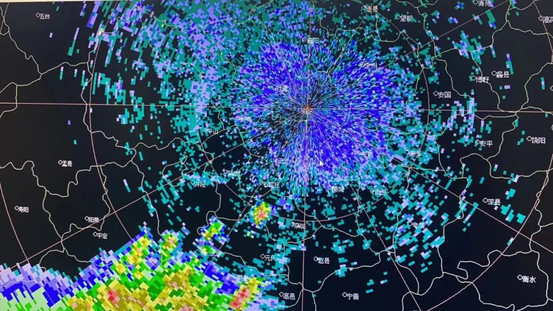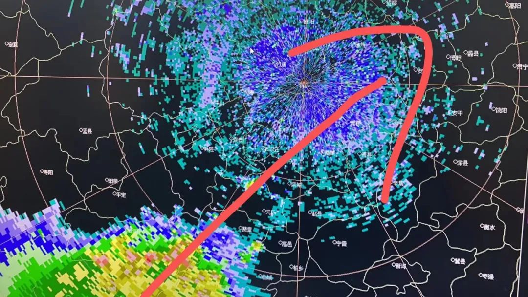 降水实况:截止到那时中午14:35分,降水回波正自西南向东北方向移动