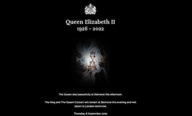 在女皇逝世的消息宣布后,白厅前的广场迅速被人群淹没,无人机的镜头拍摄到黑压压的人头攒动。在女皇逝世前半个多小时,白厅上方出现了双重彩虹,市民纷纷举起手机记录。在欧洲最繁忙的希思罗机场,旅客们凝视着电视屏幕,全神贯注于现场报导。在今年刚刚启动的新的伊莉莎白地铁线上,乘客们也讨论着她的健康状况。