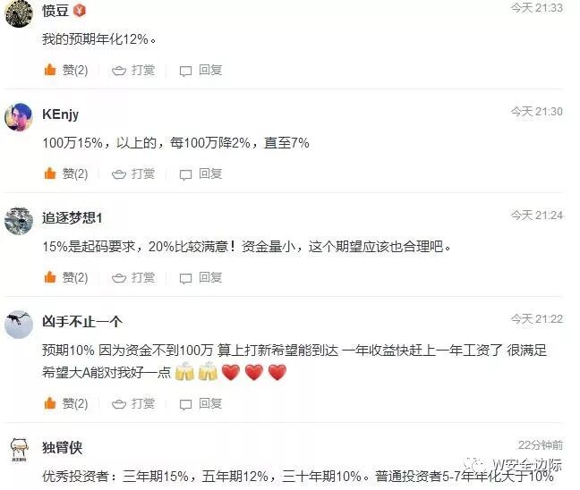 为此我在雪球网发了两个悬赏贴问:做为股市中的两个股权投资者,你认为他们预期的年复利收益率多少为科学合理?